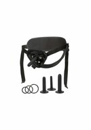 The Boundless Silicone Pegging Kit is made to thrust you into the thrilling world of endlessly satisfying pleasure. This anal pleasure set is made to play with 3 graduated sizes of pegging probes, a universal harness, and 3 graduated sizes of support rings. The sensual silicone probes are made to escalate in pleasure with 3 graduated sizes to ease you into the thrills of backdoor passions. Easily change the probe size with the set of 3 interchangeable harness rings to accommodate any dong, dildo, or Boundless harness toy. Stay comfortable even during the most vigorous pleasure play with the universal fit, fully adjustable thigh and waist straps, and supportive back band. Embrace uninhibited play, unrestrained pleasure and let your fantasies run wild with this harness and probe set.
