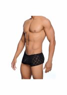 MOB Eroticwear Rose Lace Mini Boy Shorts are for those modern men that like the finer things in life and want to feel and look sexy. The subtly sheer rose embroidered lace leaves just enough to spark the imagination and will drive your partner wild